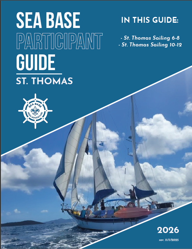 Please find and share the participant guides below with your Sea Base crew. There have been minor updates to resource links, required paperwork, adult leadership and co-ed crew information, as well as specially needs accessibility information (COASTS).